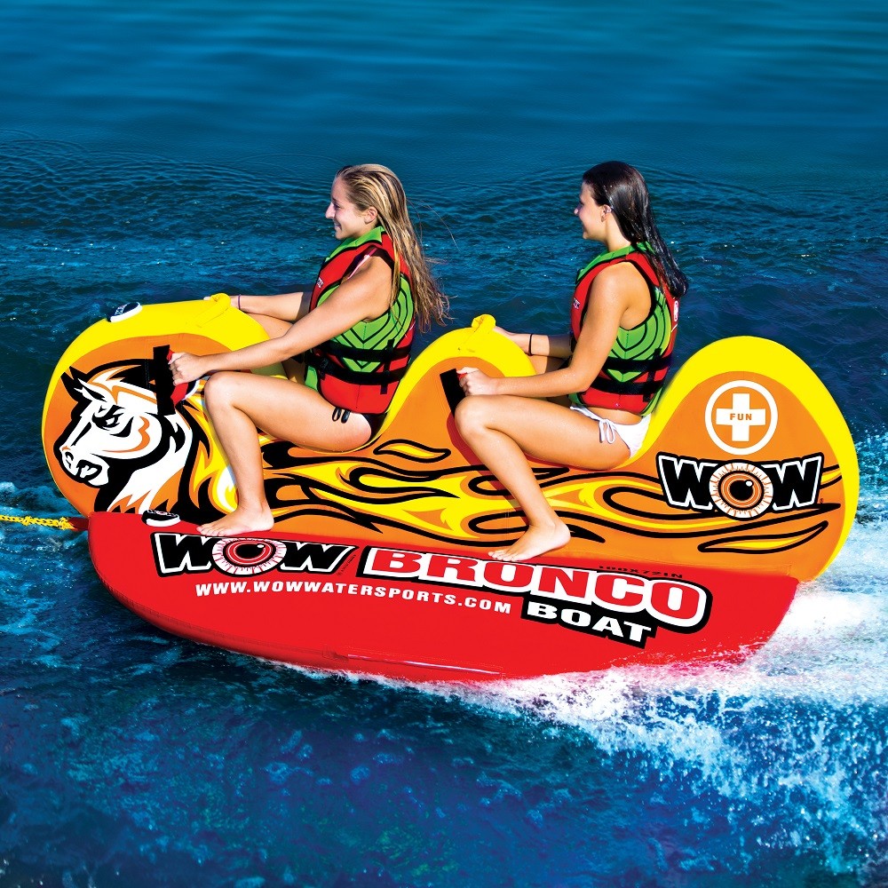 Once again, WOW has been inspired by an old concept to create a brand new one. Banana or torpedo buoys have been around for many years. The Bronco Boat has been designed with the same profile but offers in addition two seats with backrests to be well in place when sliding. This backrest also allows to separate the riders in case of a fall. In addition, wide tubes on each side of the buoy improve balance and stability. The Bronco Boat is therefore a great towed buoy for children and the whole family.